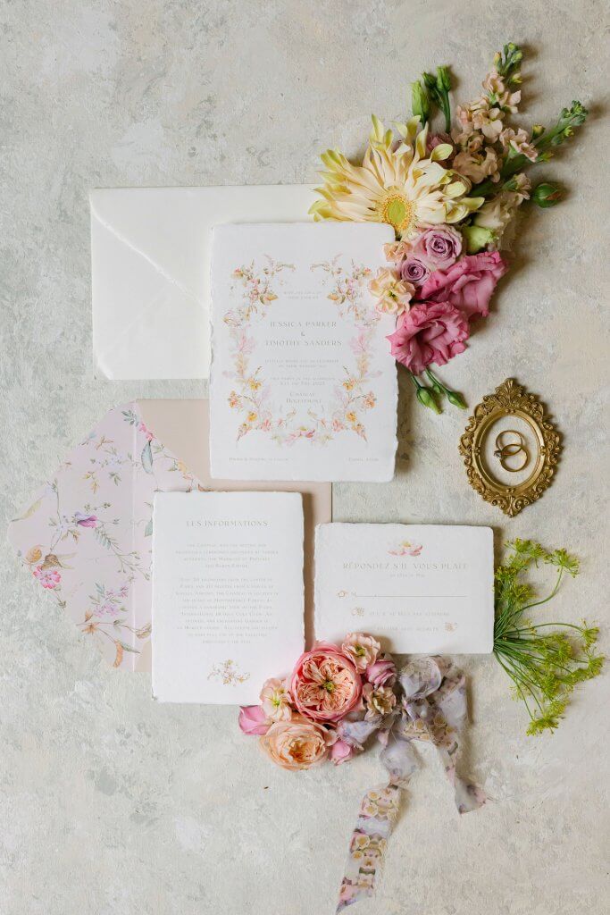 The event was a celebration of art, nature, beauty and timeless elegance deploying a pastel color palette with an explosion of florals perfectly mirroring the bucolic surroundings of the château, nestled in the countryside and the Montmorency forest.