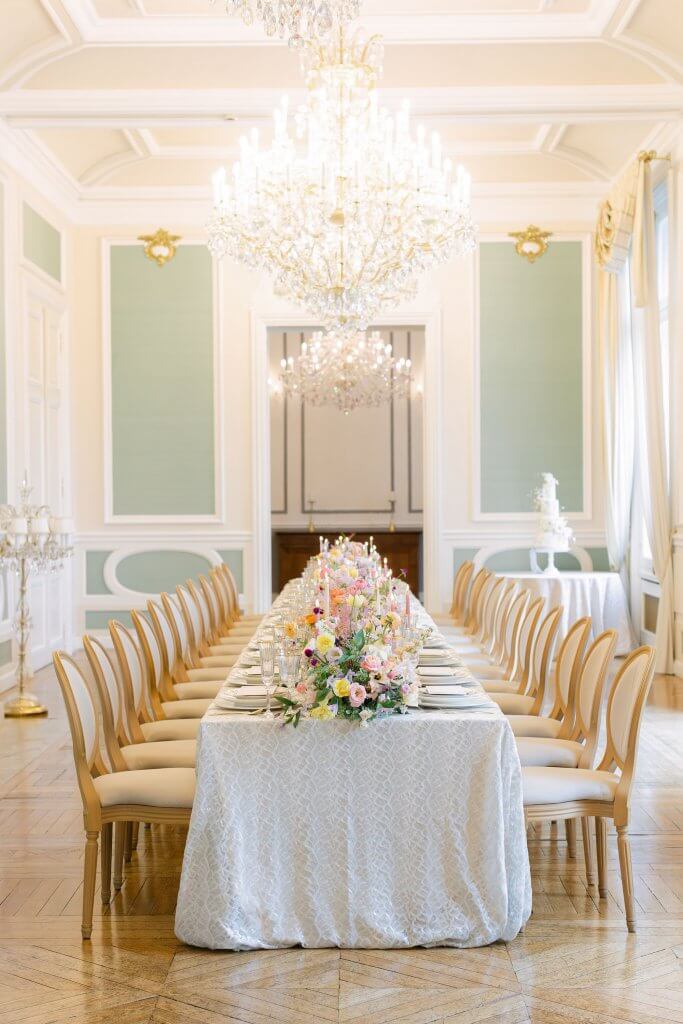 Wedding inspiration can come from all quarters but couples who choose Château Bouffémont as their wedding venue are often directly inspired by this beautiful 19th-century French château, as was the case for this wedding. In the words of the designers the chateau became an integral part of the wedding story.